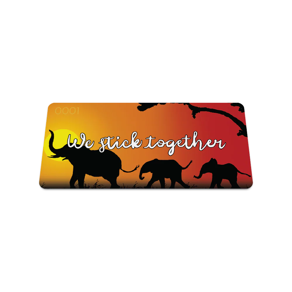 We stick together describes an elephant herd, as they stick together like a close family, even though some are not actually related. They protect the little ones, and they mourn the ones that passed away, even visiting their last resting place for a long time after they left this world (they’re such intelligent creatures <3). This strap can be worn with the people you -like the elephants- stick with like family through the good and bad times.